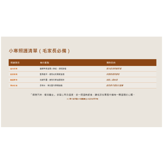 三、 小寒照護清單(毛家長必備)